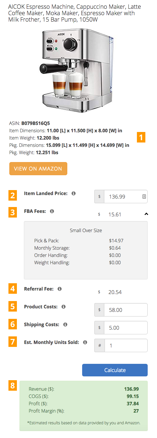 Calculate your Amazon seller fees, revenue, and profit with our single or bulk FBA fee calculator. Import your unique identifiers (ASIN, UPC, SKU, etc.) and return the estimated Amazon fulfillment costs in bulk fashion for up to thousands of products per search.